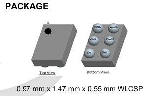 | 封裝類型 | 6引腳芯片規模封裝 | 6引腳晶圓級芯片規模封裝 (WCSP) |